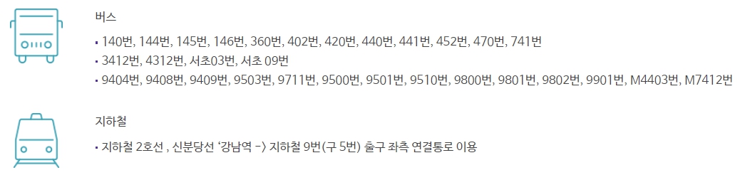 지하철 2호선 , 신분당선 ‘강남역 -> 지하철 9번(구 5번) 출구 좌측 연결통로 이용