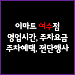 이마트 여수점의 휴무일, 영업시간, 주차요금, 전단행사 및 기타 정보까지 순서대로 알려드리겠습니다.
