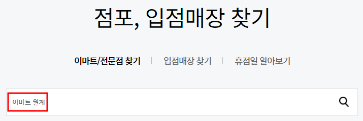 점포찾기에서 방문할 이마트 월계점을 입력 후 돋보기 버튼을 클릭하시면 됩니다.