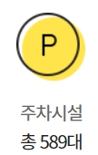 주차가능대수는 총 589대이며, 이용차량 무료주차가 가능합니다.