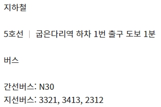 5호선 │ 굽은다리역 하차 1번 출구 도보 1분