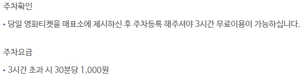 메가박스 해운대점의 주차는 영화관람 시, 특정시간 무료주차가 가능합니다.