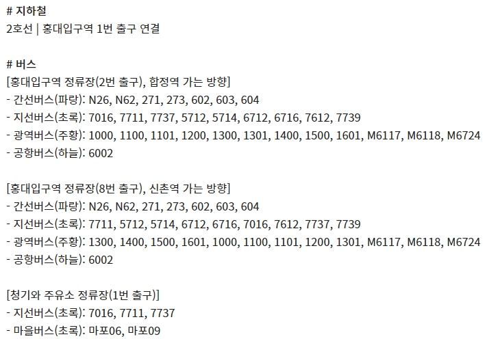 [홍대입구역 정류장(8번 출구), 신촌역 가는 방향]