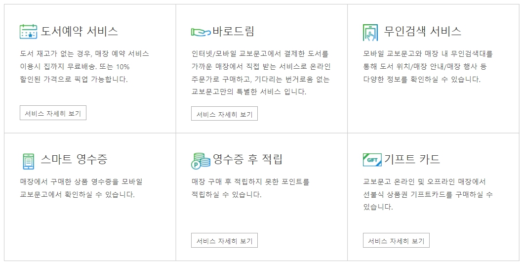 교보문고 지점마다 매장 서비스는 다릅니다.